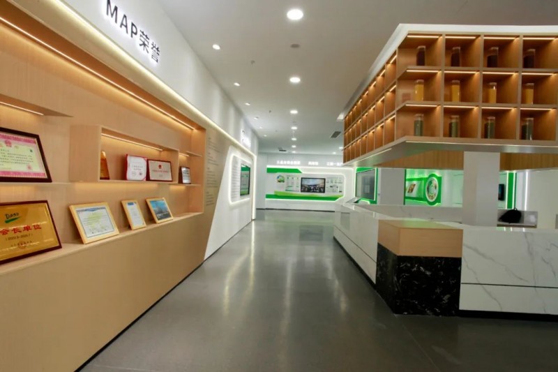 奧揚(yáng)設(shè)計本展廳以白色為主色調(diào),配以麥田黃、MAP綠色輔色調(diào),搭配清新干凈的灰色調(diào)。